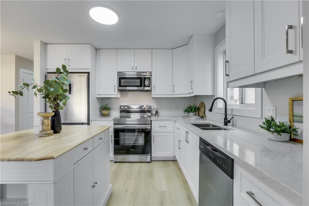 Step inside to an inviting entryway with stylish wood accents walls, opening to a desirable & flowing main floor. The brand-new white kitchen shines with quartz countertops, an island, and all new stainless-steel appliances. The fully open layout provides an unobstructed view of the dinning room & the large sun-filled living room with soaring cathedral ceilings—perfect space for those gatherings with your family or friends. Every detail has been carefully renovated with quality materials including new luxury vinyl flooring throughout, fresh neutral paint from top to bottom & lots of new updated lighting. Attention to details being a priority. Upstairs, you’ll find three comfortable size bedrooms, a luxury ensuite, walk in closet and plenty of storage. The basement features a rough-in bath, ready for your personal finishing touch. Outdoors, enjoy a fully new fenced yard with a maintenance-free concrete patio for those summer entertaining nights, plus a charming front porch ideal for a morning coffee. A plus for this home is parking for 5 cars and no sidewalk to shovel! Situated in the sought-after Fanshawe community with quick access to Veteran Memorials/ Highway 401, is a commuter’s dream along with major shopping destinations like Masonville Place, White Oaks Mall, public transit, walking distance to excellent public/private/French immersions schools and the famous Fanshawe College. Enjoy time in the nature on Cedar Park Trail trails or nearby Fanshaw Lake trails. —This is a modern, beautiful, move in ready home at its best!!! Book your private showing today!